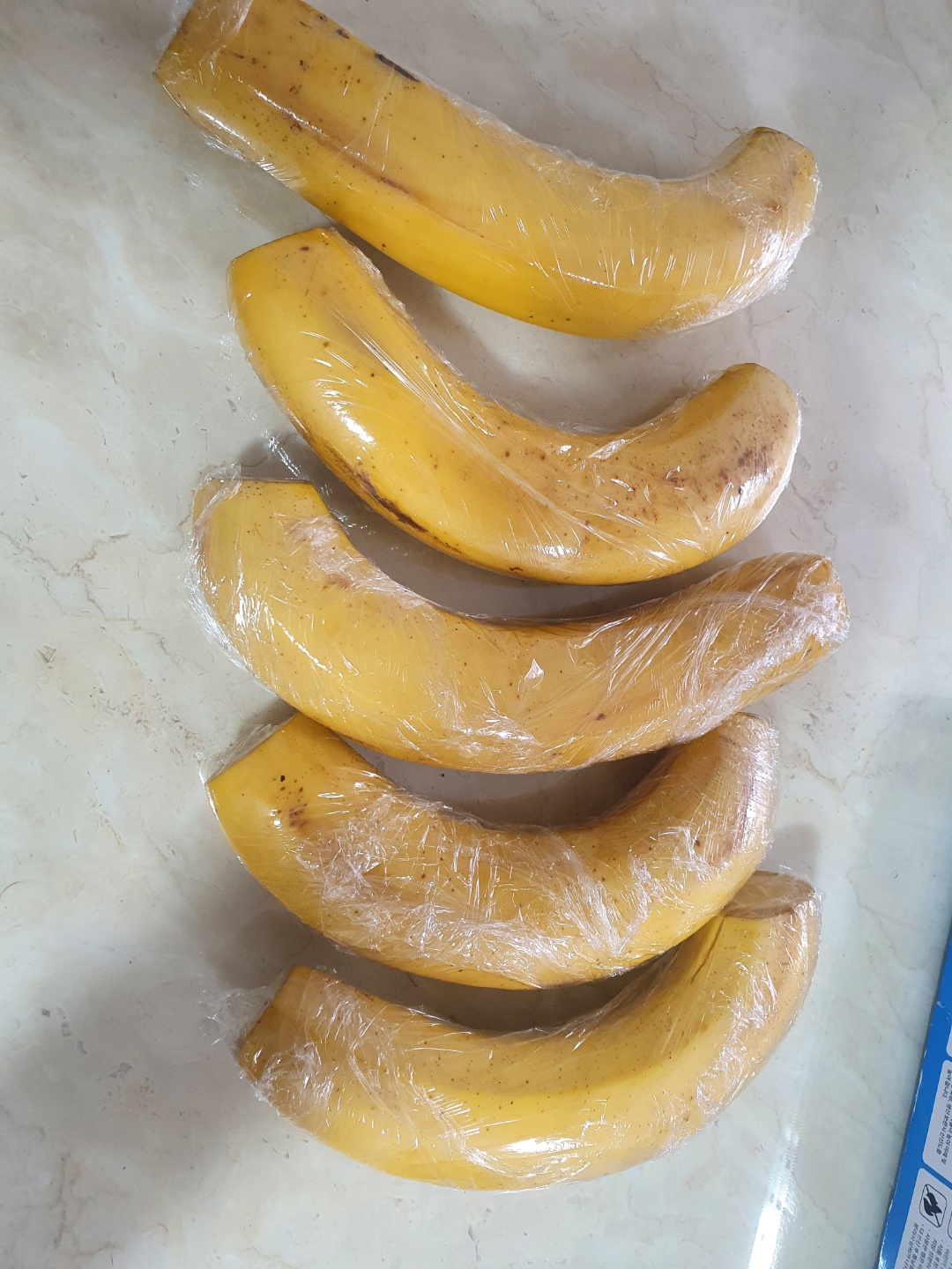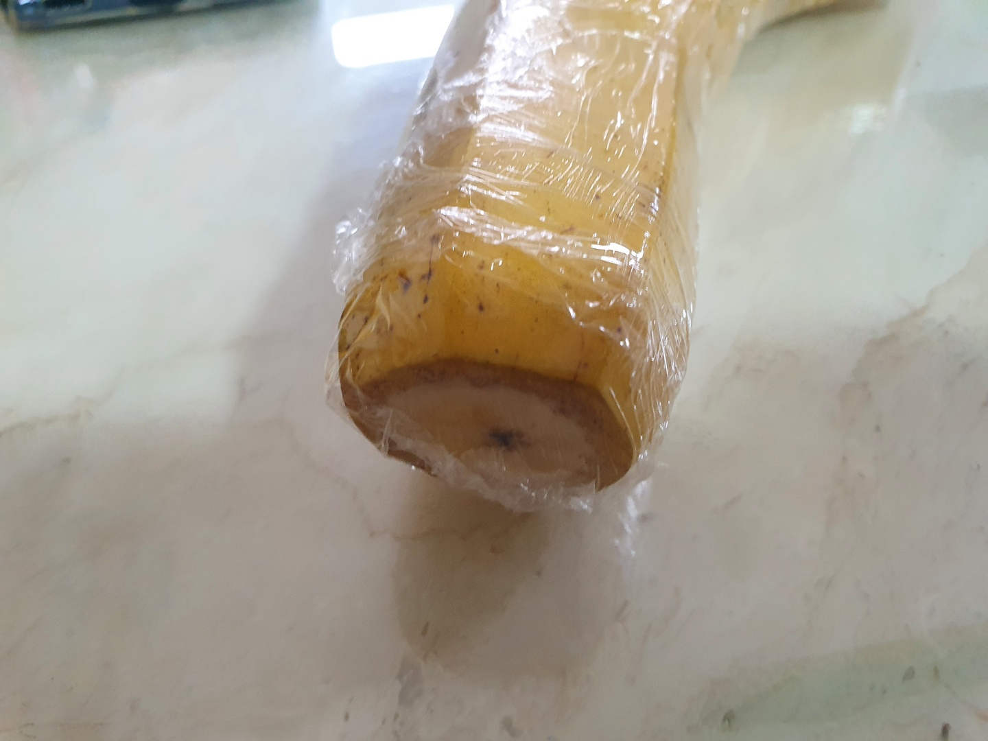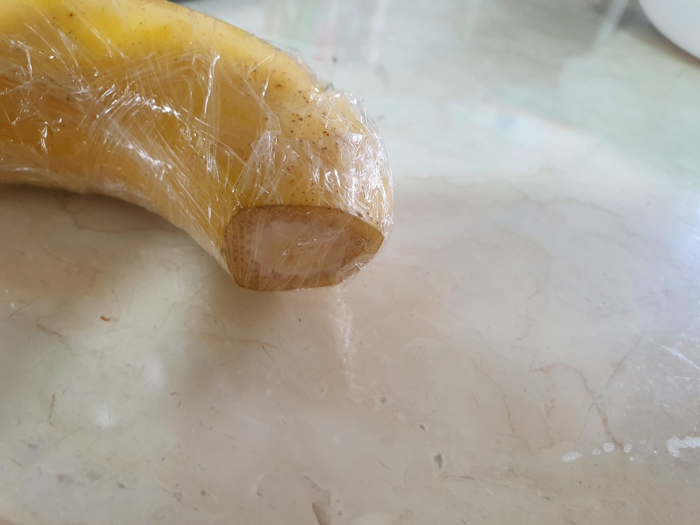 위 이미지처럼 양끝을 자른 바나나의 양끝을 랩으로 싸줍니다.